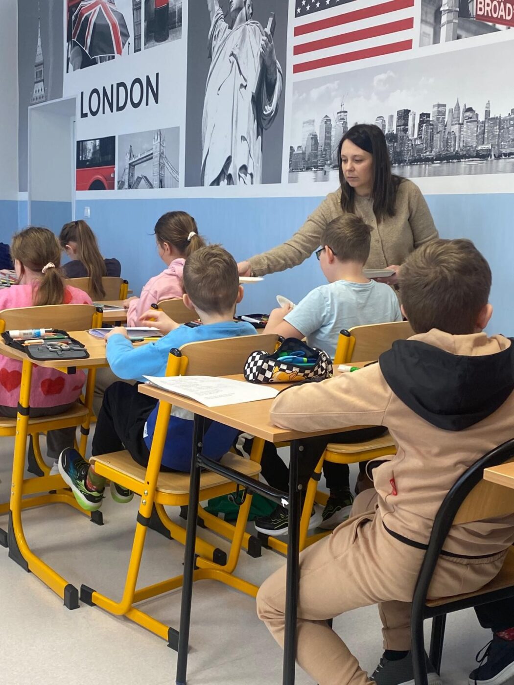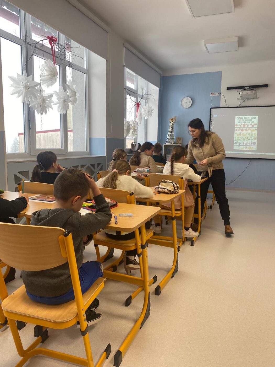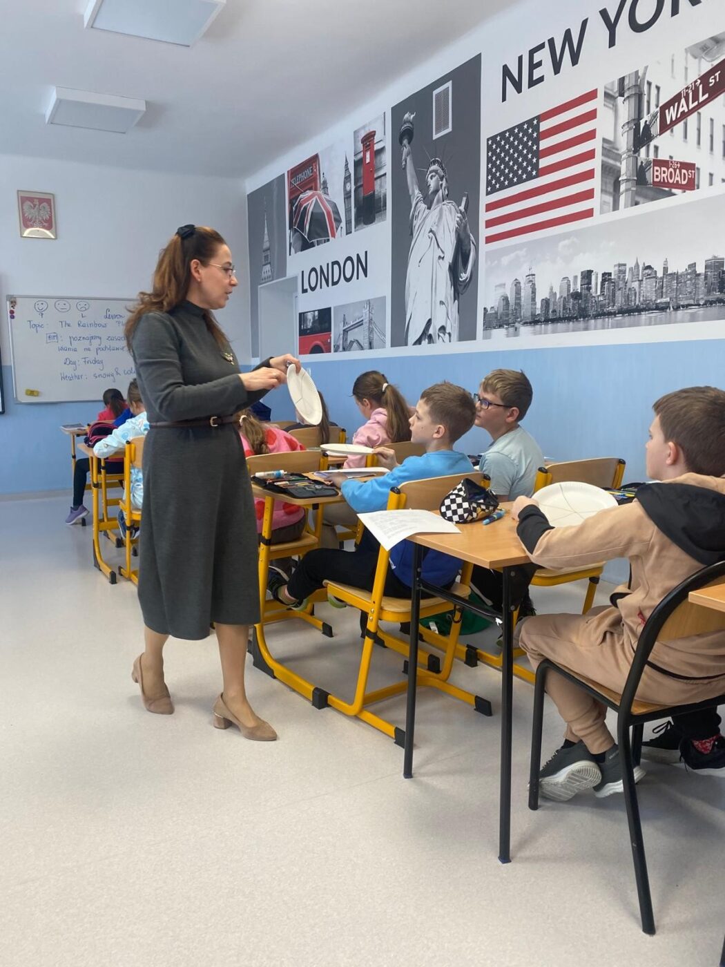 Lekcja otwarta odbyła się na zajęciach języka angielskiego w klasie IIIa. Obie nauczycielki współpracowały ze sobą zarówno w kontrolowaniu przebiegu zajęć, jak i przygotowaniu pomocy, co zwiększało efektywność lekcji. Z przyjemnością obserwowałyśmy, jak Izabela wspierała uczniów potrzebujących pomocy, nie tylko z orzeczeniem. Monitorowała ich pracę dyskretnie, bez zakłócania toku lekcji. Była czujna i uważna, jednocześnie nie narzucała się swoją obecnością, co sprzyjało samodzielności uczniów. W tym czasie Ewa – nauczyciel prowadzący mogła skupić się na przekazywaniu wiedzy, wykorzystując maksymalnie cenny czas dzieci. Lekcja nie pozostawiała czasu na nudę, wypełniona była różnymi aktywnościami, w które uczniowie chętnie się angażowali.