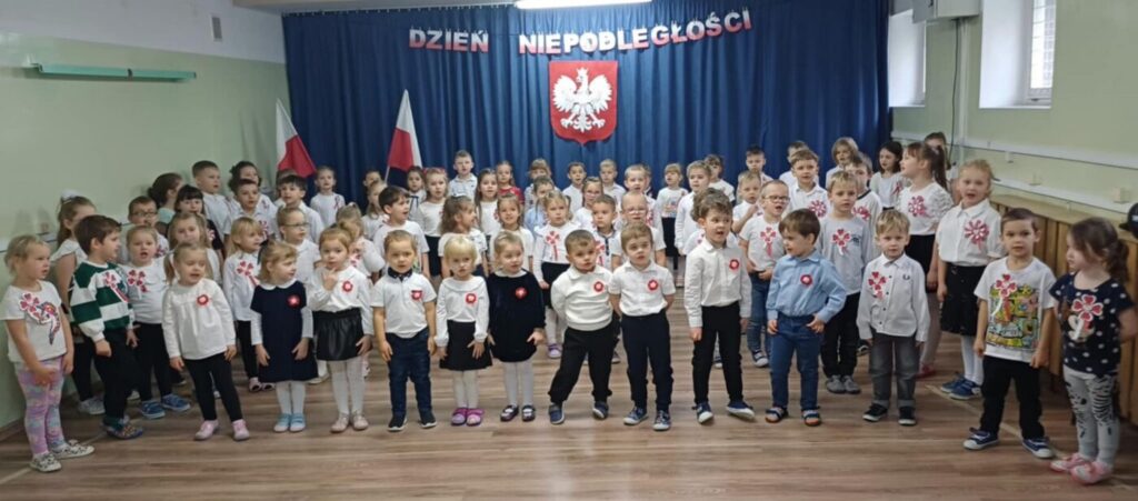 Uroczystość rozpoczęła się od wspólnego odśpiewania hymnu państwowego Mazurek Dąbrowskiego. Następnie dzieci zaprezentowały część artystyczną, w której przypomniały polskie symbole narodowe. Przedszkolaki recytowały wiersz Władysława Bełzy „Katechizm polskiego dziecka” oraz zaśpiewały piosenkę „Bo ja jestem Polak mały”.
